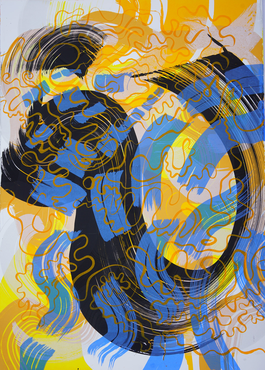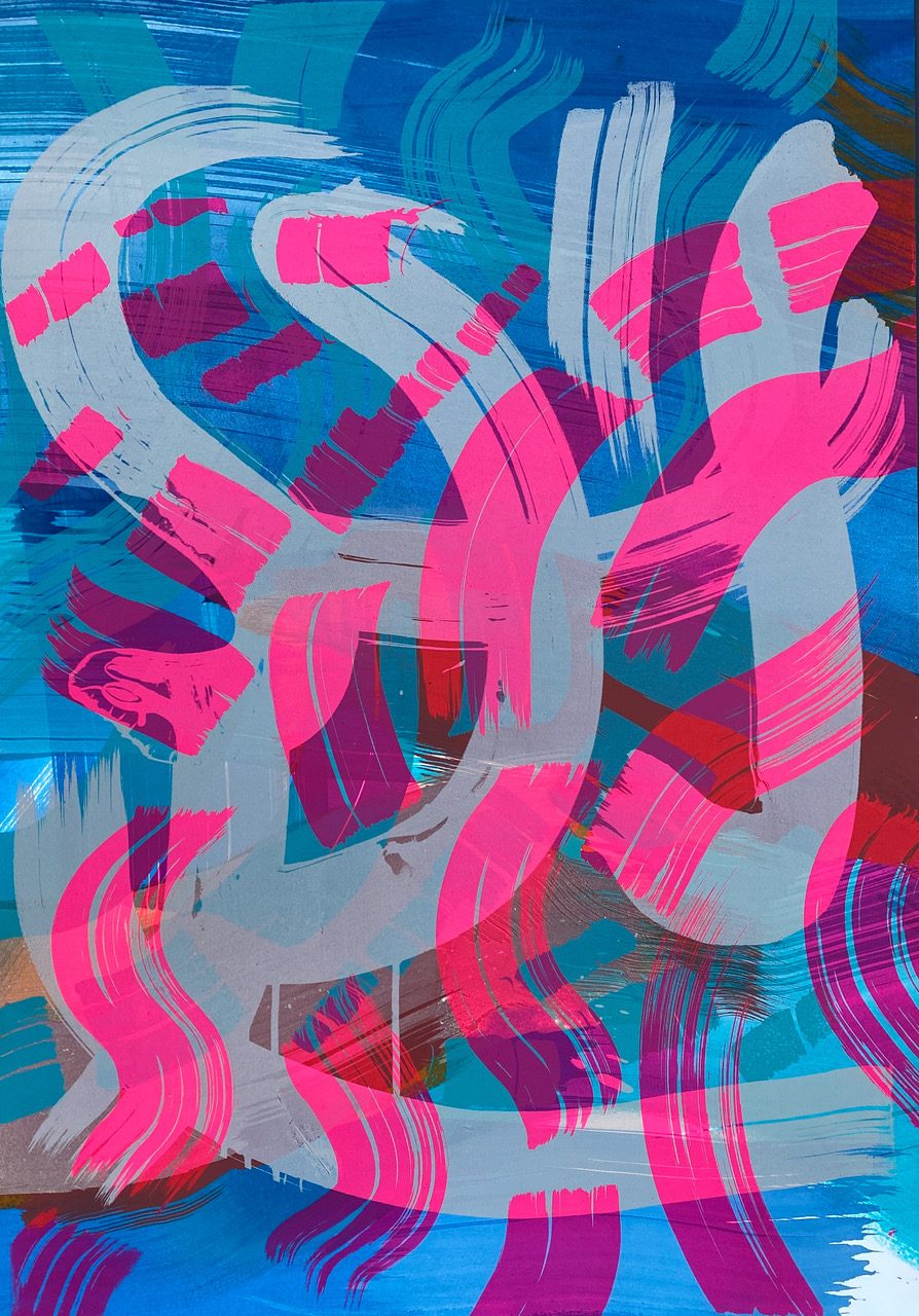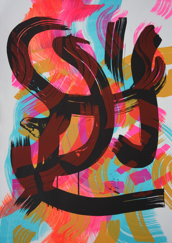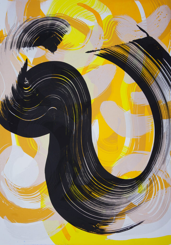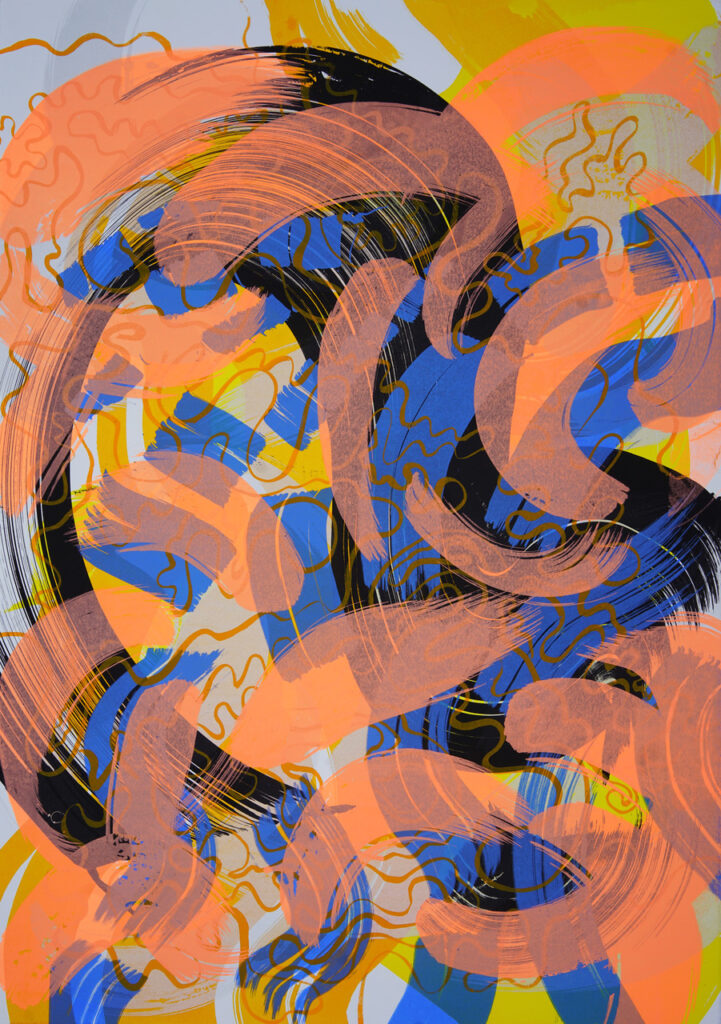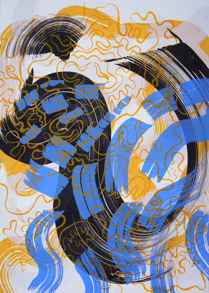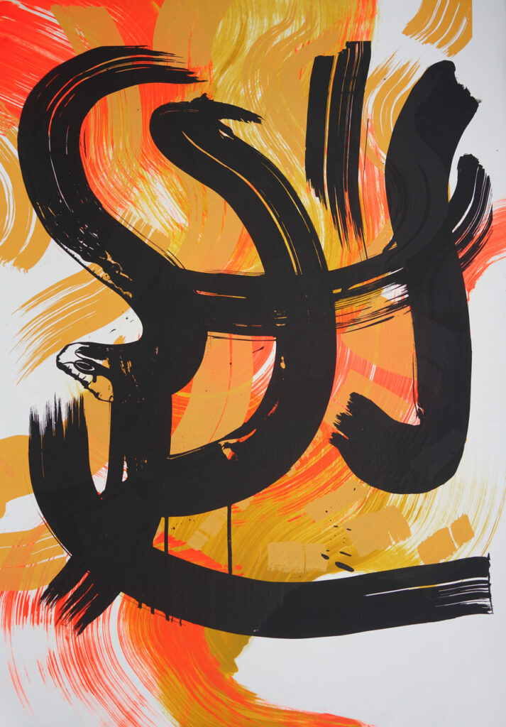 Medium: Tuschmalerei, Eitempera – überdruckt mit Siebdruck Büttenpapier 54 x 75cm, 2025