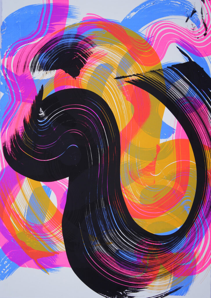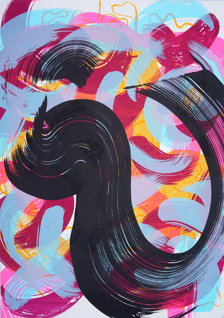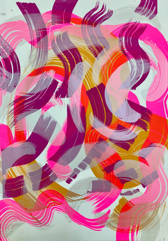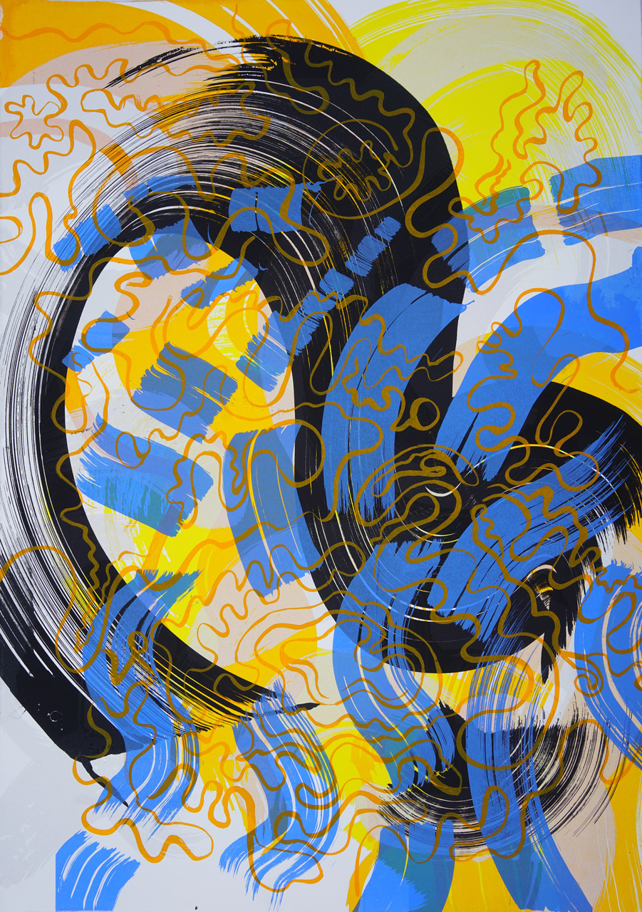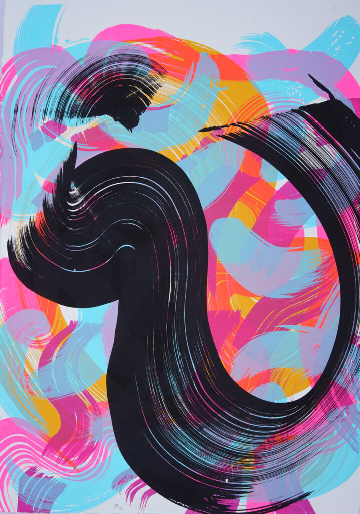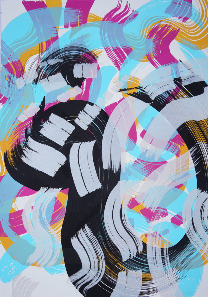Medium: Tuschmalerei, Eitempera – überdruckt mit Siebdruck Büttenpapier 54 x 75cm, 2025
