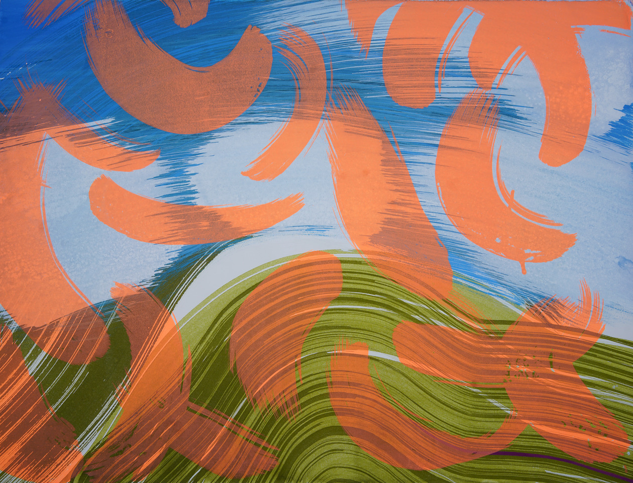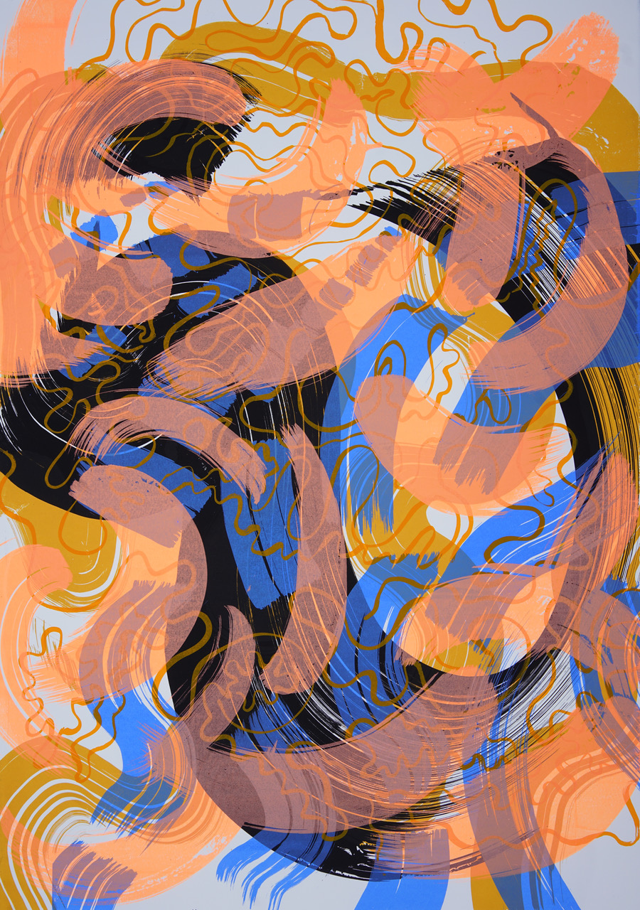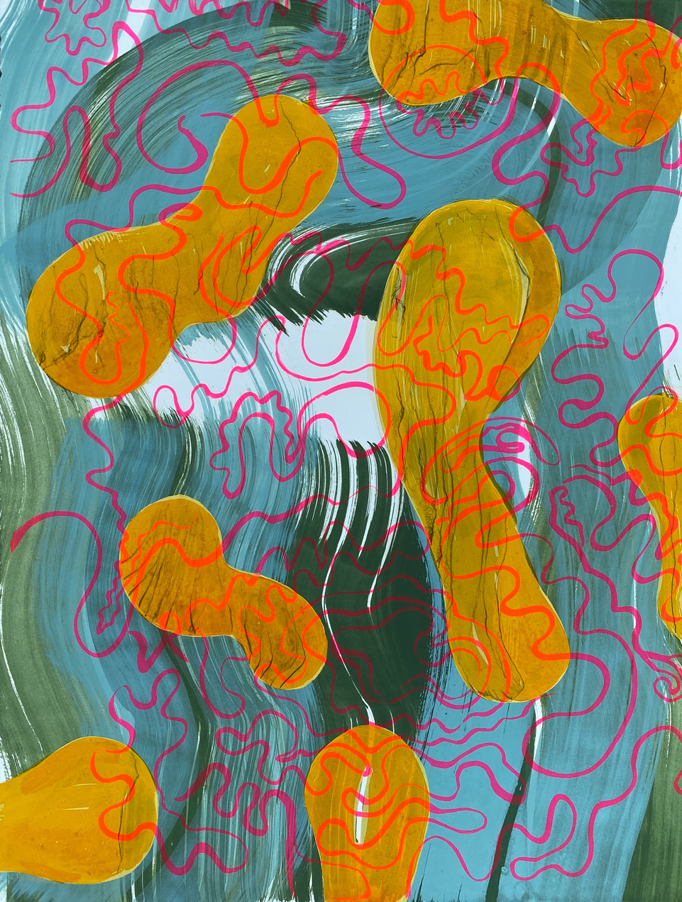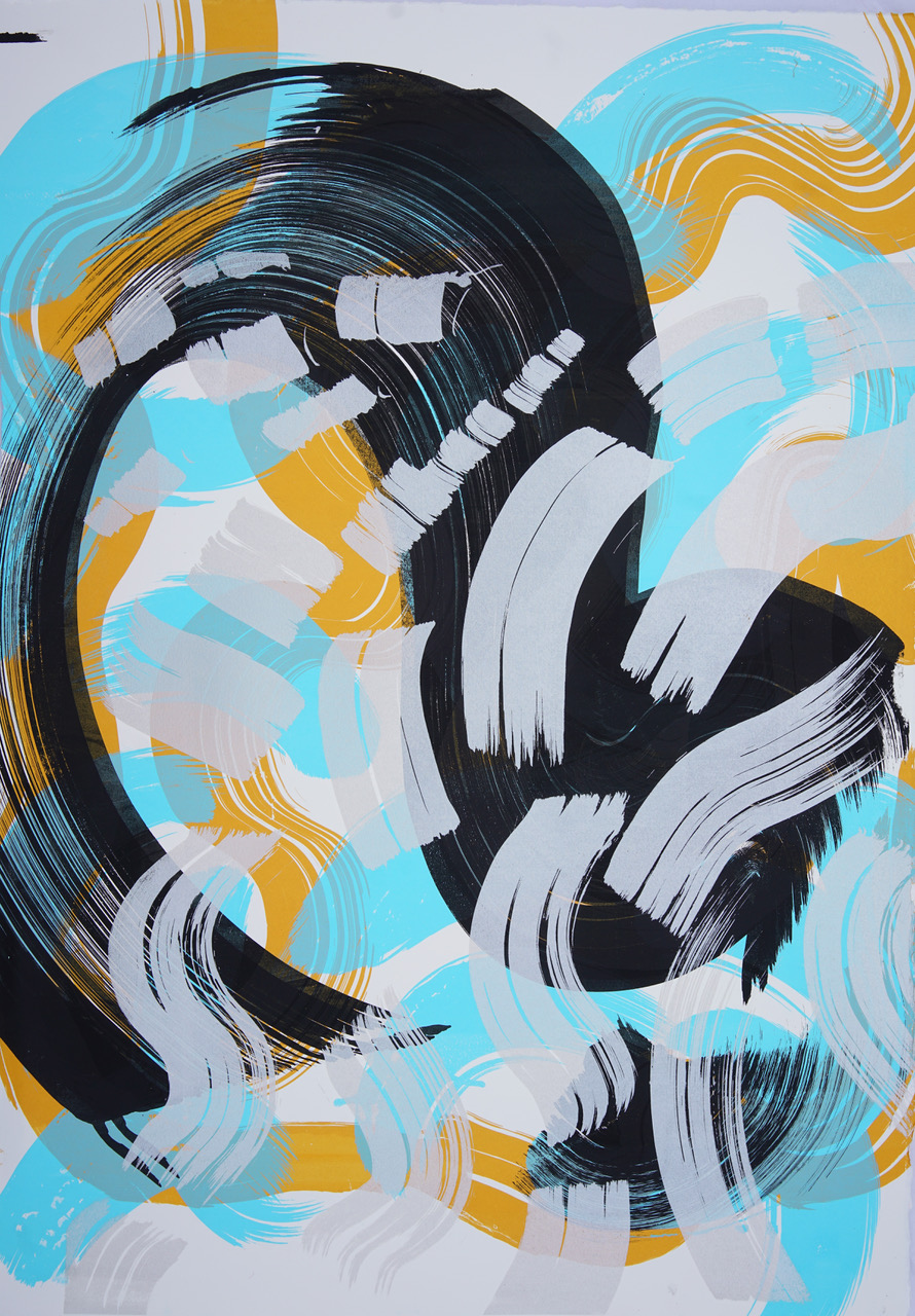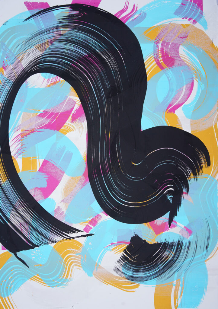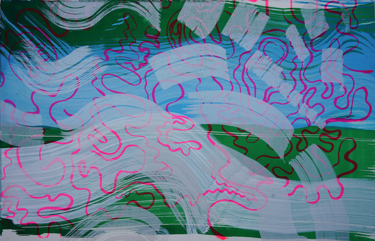 Medium: Tuschmalerei, Eitempera – überdruckt mit Siebdruck Büttenpapier 54 x 75cm, 2025