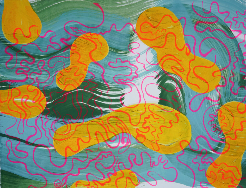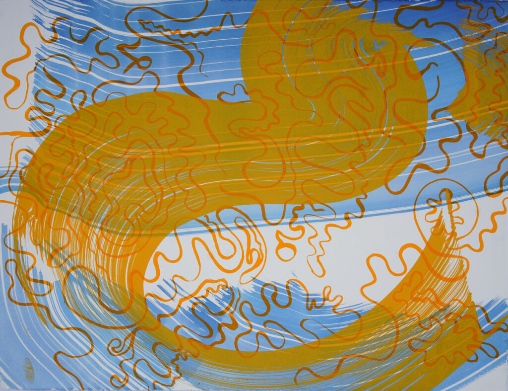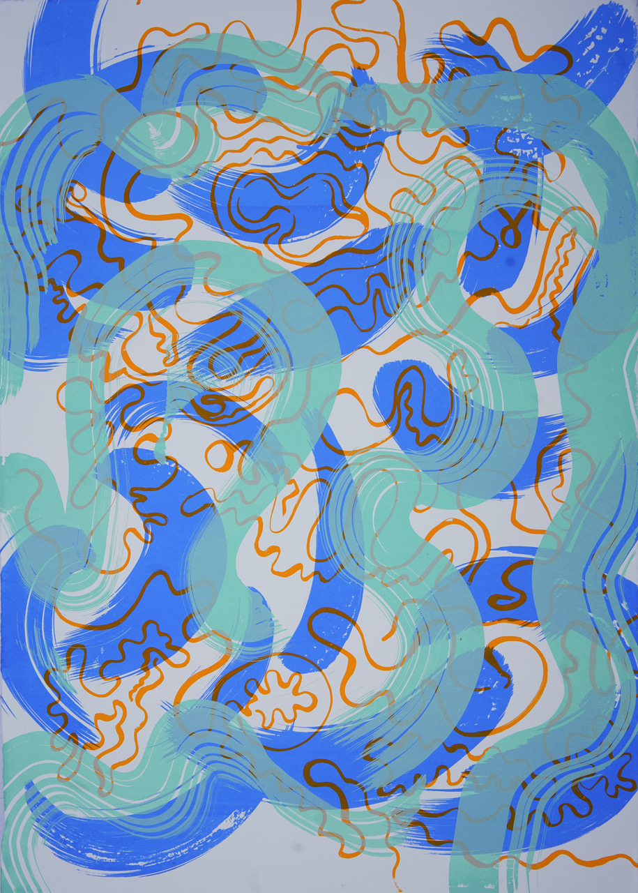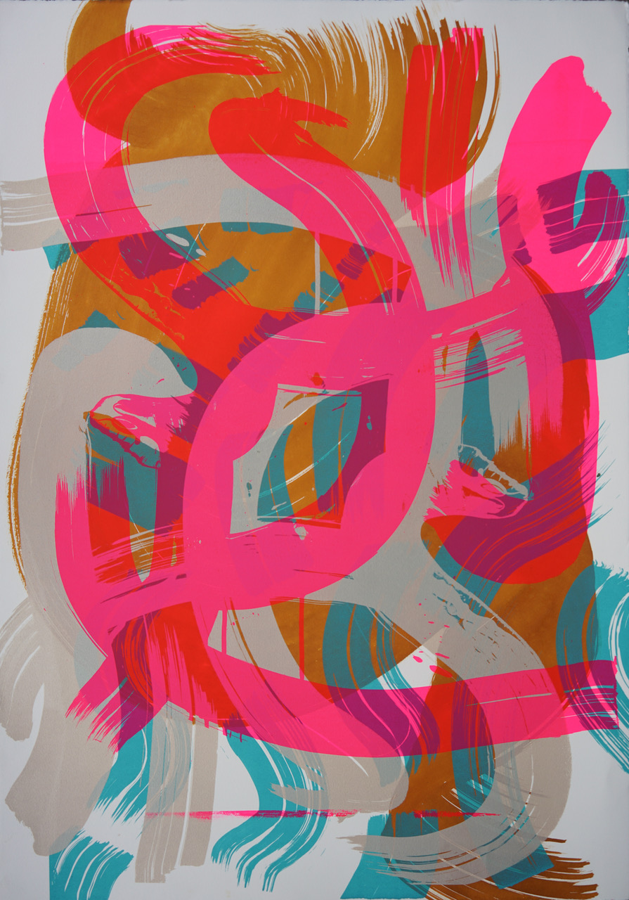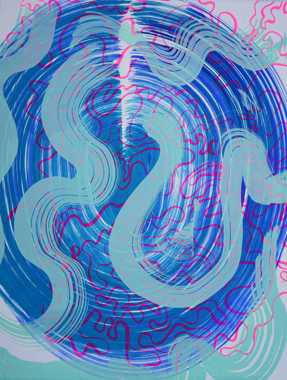 Medium: Tuschmalerei, Eitempera – überdruckt mit Siebdruck Büttenpapier 54 x 75cm, 2025